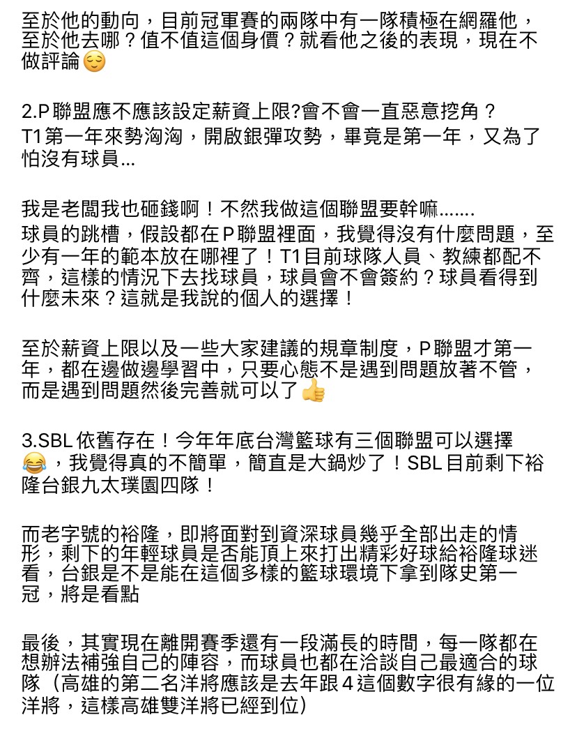 此外他還在文中加碼爆料「高雄的第二名洋將應該是去年跟4這個數字很有緣的一位洋將,這樣高雄雙洋將已經到位。」