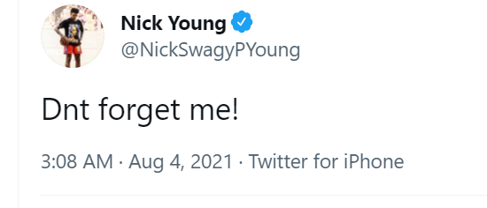 NBA美國職業籃球聯賽,在自由市場開啟後各隊補強消息不斷,前NBA球員「黑人問號」Nick Young看到自由市場正熱,自己也更新了個人社群。