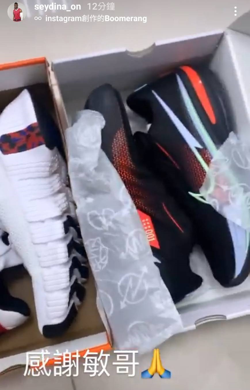 在稍早國王隊外籍生聶歐瑪發布一張限時動態,照片為自己拿著一張新球鞋,並寫到「感謝敏哥」文章一發馬上被網友截圖轉發。