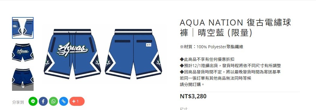 根據官網顯示,這條海神隊短褲分為深海靛和晴空藍兩個配色,一條都是要價3280,且為限量版球褲,但官方目前並未明確標明限量的件數。
