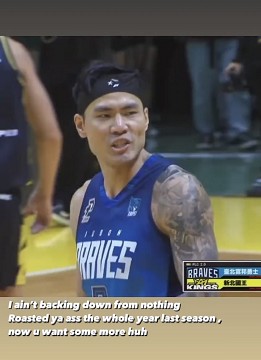 本場比賽第二節2分多鐘,張宗憲在楊敬敏的防守下,命中高難度進球,隨後指著場邊球迷碎碎念著,看起來情緒相當激動。