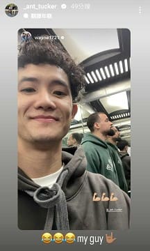 稍早蔣淯安釋出一張自己在電梯內和塔克老師的合照,其中塔克老師還穿著雲豹綠色配色的帽T,貼文發布後不久就被各大社群瘋傳。