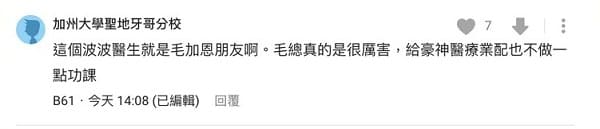 而在論壇「D-CARD」上就有網友爆料「這個波波醫生就是毛加恩的朋友阿。毛總真的是很厲害,給豪神醫療業配也不做一點功課」,不過毛總目前仍未針對此事做出回應。