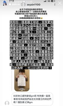 他接著寫到「不管你們怎麼說,作為老婆,我看著他白髮越來越多,謾罵橫飛我 都會陪著他一起撐過,也謝謝和我一起相信他的家人朋友及球迷,這幾季不容易,但我們 都不可能放棄,我非常以他為榮,也100%的支持他!」