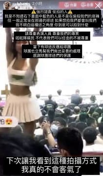 昨日一名男球迷涉嫌偷拍球隊啦啦隊成員乳儒,事後乳儒在個人社群曬出自己被偷拍的照片,並設法找出這位男球迷,對此球隊稍早也發布聲明。
