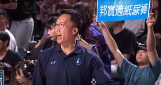 另外在比賽中也出現有趣一幕,在許晉哲在場下下達戰術時,底下一名男球迷直接在後方舉看板,看板上寫道「邦寶適紙尿褲」。