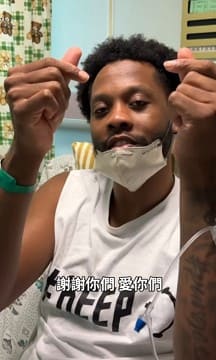 鐵米在病床上跟雄親們喊話「就像你們看到的,手術很順利,不是太大的傷,差不多要六周恢復,答應你們一定會強勢回歸,依然是那個充滿笑容的我,也希望賽季能有很好的收尾。」