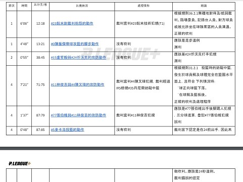 第四節1分37秒張伯維出手後腳踢人犯規,當下判決林俊吉犯規,這是一次誤判,還有第四節最後8秒錢肯尼的合法防守被吹犯規,這是一次誤判。
