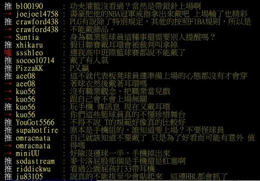 賽後,一名球迷在社群媒體上發文詢問:「現在球員比賽可以戴耳環嗎?記得FIBA規則有規定,好像不行佩戴會對其他球員造成傷害的裝備。NBA比賽中也沒看人戴過,而且在肢體碰撞激烈的季後賽戴耳環,很容易造成他人或自己的受傷吧。」此言一出,引發了廣泛討論。