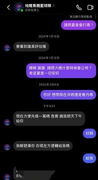 根據網友上傳截圖,照片中可以看到裕隆官方主動私訊球迷並表示:「現在方便先借一萬嗎,急需,錢我明天下午給你。」當該球迷同意後,帳號進一步提供銀行帳戶,要求對方轉帳,引發熱議。