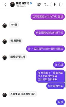 此外,網路上流傳疑似孫生與蹦闆私下的IG對話截圖,孫生多次詢問「我們要開始炒牛肉了嗎蹦闆」,蹦闆回覆「什麼」,孫生再確認「就是要開始製造仇恨了嗎」,蹦闆回「恩 應該吧」,孫生接著確認「好,因為我不知道甚麼時候開始」,蹦闆回「隨時都可以吧」,孫生再度確認「這是演戲你不要真的生氣欸」,蹦闆則回「不會生氣 你盡力發揮吧」,顯示雙方對事件有溝通,但網友對孫生行為仍多持批評態度。