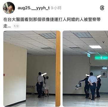 近日,又有網友在社群平台曬出曾婦現身台大醫學圖書館的照片。畫面中可見兩名員警陪同,疑似將她帶走。照片中她的身形與服裝與事件影片中的北捷阿嬤相符,引起網友熱議。