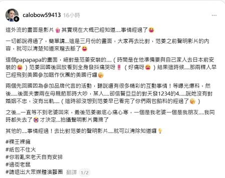 范姜彥豐稍早透過影片聲明,坦言婚姻關係已出現無法修復的裂痕,並強調「自己選擇面對現實」。而王子與粿粿至今均未就網傳影像或指控作出正式回應。事件真相仍有待釐清。
