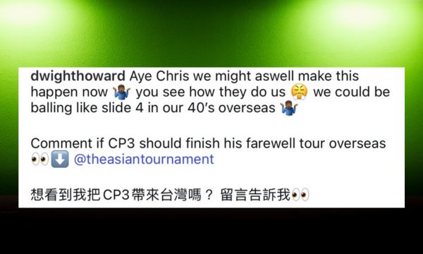 前台灣籃球洋將霍華德也在深夜拋出震撼彈,分享自己過往與CP3合作的影片,並留言表示:「想看到我把CP3帶來台灣嗎?留言告訴我。」