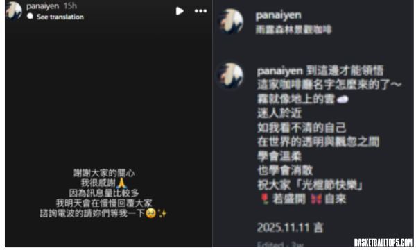 此外,言言在11月11日當天曾在社群平台發文:「霧就像地上的雲,迷人於近,如我看不清的自己,在世界的透明與飄忽之間,學會溫柔也學會消散」,並祝大家光棍節快樂:「花若盛開,蝴蝶自來」。如今回顧此文內容,似乎早已暗示婚姻關係出現變化,也呼應她近日低調回應的態度。