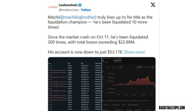 Lookonchain於16日在社群平台《X》(前身為Twitter)發文指出,黃立成自10月11日市場劇烈波動後,多次因倉位失衡遭系統強制平倉,清算次數持續攀升,被形容為近期市場中的「清算次數最多帳戶之一」。數據顯示,截至目前為止,其帳戶餘額僅剩53,178美元,約新台幣166萬元,與過往操作規模形成強烈對比。