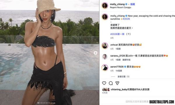 莫莉近期在社群平台更新度假行程,發布多張與友人外出旅遊的比基尼照片,並寫下:「New year, escaping the cold and chasing the sunshine. 來避寒了,我果然還是適合夏天。2026第一辣。」然而在職場事件曝光後,相關貼文的留言區被關閉,但互動數據仍持續累積。