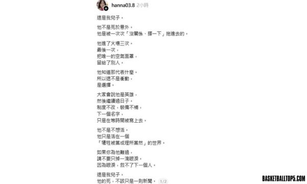 詹母在文中直言,社會或許會稱呼他為英雄,隨後繼續各自的生活,但若制度不改、裝備不補,「下一個名字,只是在等時間被寫上去。」她痛批,兒子並非不想活,而是活在一個「犧牲被當成理所當然」的環境中。