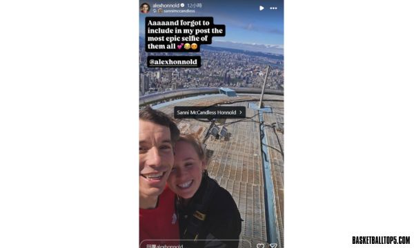 不過在離台後,霍諾德又於社群平台分享此次攀登的珍貴畫面。他在IG限時動態中貼出一張與愛妻站在台北101頂端的合影,並幽默表示,自己先前發文時竟然忘了放上這張「史詩級」自拍照,形容這是所有照片中最具代表性的一張。