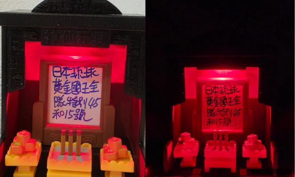 昨日賽後,一名領航猿球迷於個人社群發文,貼出一張從香港購得、帶有紅色詭異燈光的「神仙玩具」微縮模型照片。令人震驚的是,該球迷在神位的牌位處親筆寫下:「日本琉球黃金國王全隊,特別 45(Jack Cooley)和 15 號(松脇圭志)」,其視覺呈現效果宛如在為活人「設靈堂」或「辦喪事」。