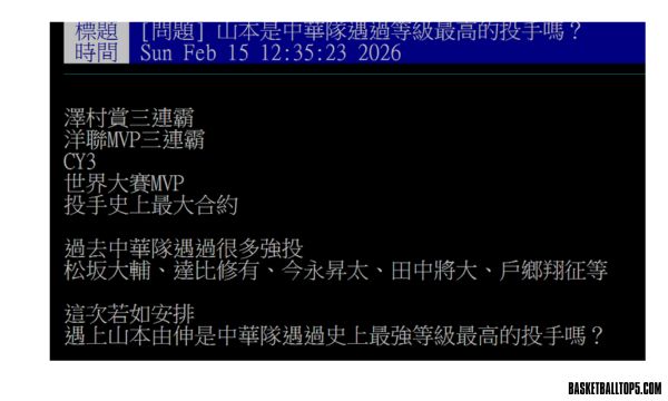 支持山本的球迷指出,山本由伸目前的履歷幾乎是「無死角」:大聯盟投手史上最大合約、澤村賞三連霸、世界大賽 MVP。網友分析,過去中華隊在 2007 年亞錦賽對決達比修有時,他雖具備日職頂尖實力,但尚未在大聯盟證明自己;而現在的山本是以「世界冠軍核心」的身分回歸,從成就與合約層級來看,山本無疑是中華隊遇過的最高等級投手。
