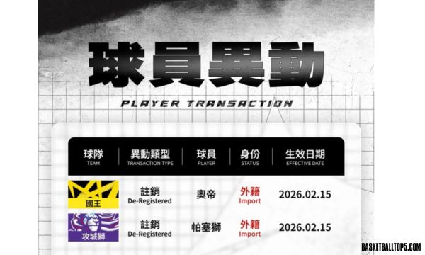根據稍早聯盟消息,攻城獅確定註銷洋將帕賽斯,國王則是註銷洋將奧帝。