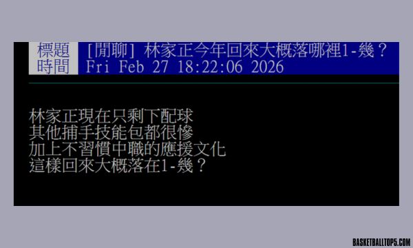林家正的低迷表現也隨即在 PTT上引發熱烈討論。有網友以「林家正今年回來大概落在哪裡 1-幾?」為題發文,指出他目前的打擊技能包似乎相當慘淡,加上可能不習慣國內應援文化的傳聞,擔心他回台後的適應問題。