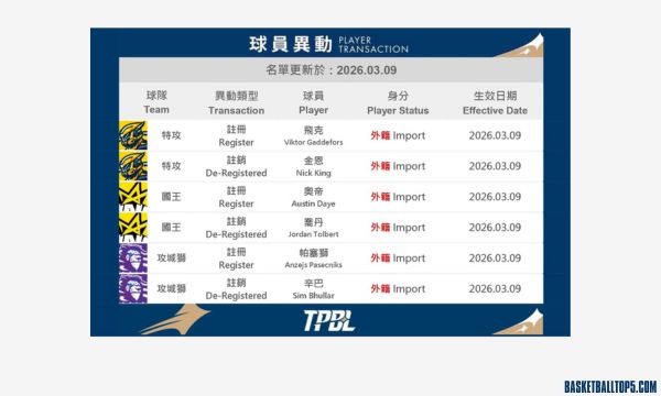 台灣職籃 TPBL 最終隊職員與球員註冊名單於今日正式揭曉,各隊為了衝擊季後賽紛紛進行最後的人員異動。其中最令球迷震驚的,莫過於新竹御頂攻城獅正式註銷了資深洋將、同時也是台灣女婿的辛巴;而新北中信特攻則完成戰力補強,將金恩註銷,確定留下飛克。