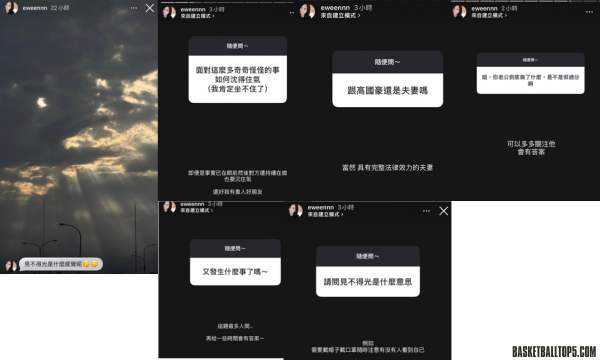 針對網友詢問「見不得光」的含義,高國豪妻子毫不留情地定義為:「例如需要戴帽子戴口罩隨時注意有沒有人看到自己」。隨後更放上一張雲層透光的照片,配文寫道:「見不得光是什麼感覺呢」,並附上噤聲與思考的表情符號。