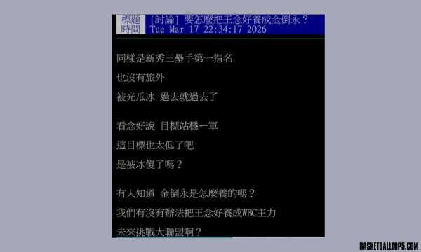 也有人感嘆台灣與韓國頂尖新秀的養成環境與身材差距「人家是MVP等級 球衣銷量第一名 說真的真的不能比」、「一樣3B,金倒勇早已證明自己,王念好還是先有一個正常出賽的賽季再來說金倒勇吧」,認為王念好首要任務是「遠離光哥(教練)」並累積經驗。